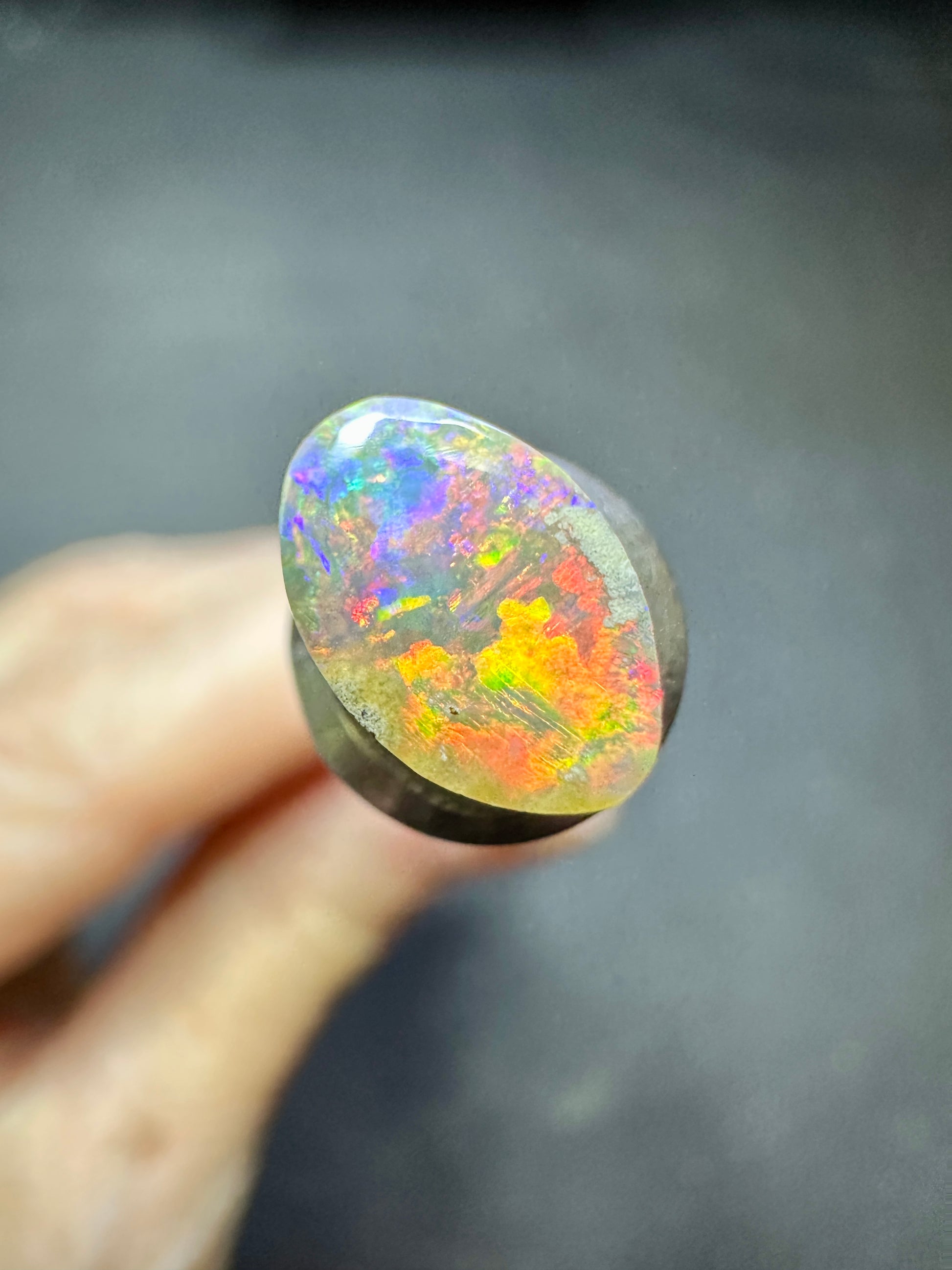 Bright Bright Bright floral Boulder Opal. She might be small but make no mistake her presence is very loud. I love the warm floral colours captured in this gemmy Opal.