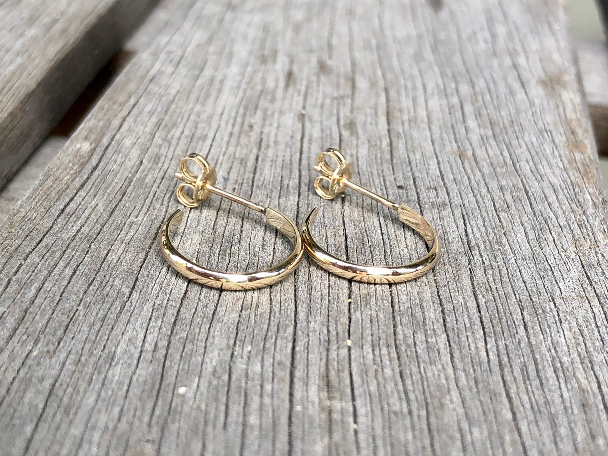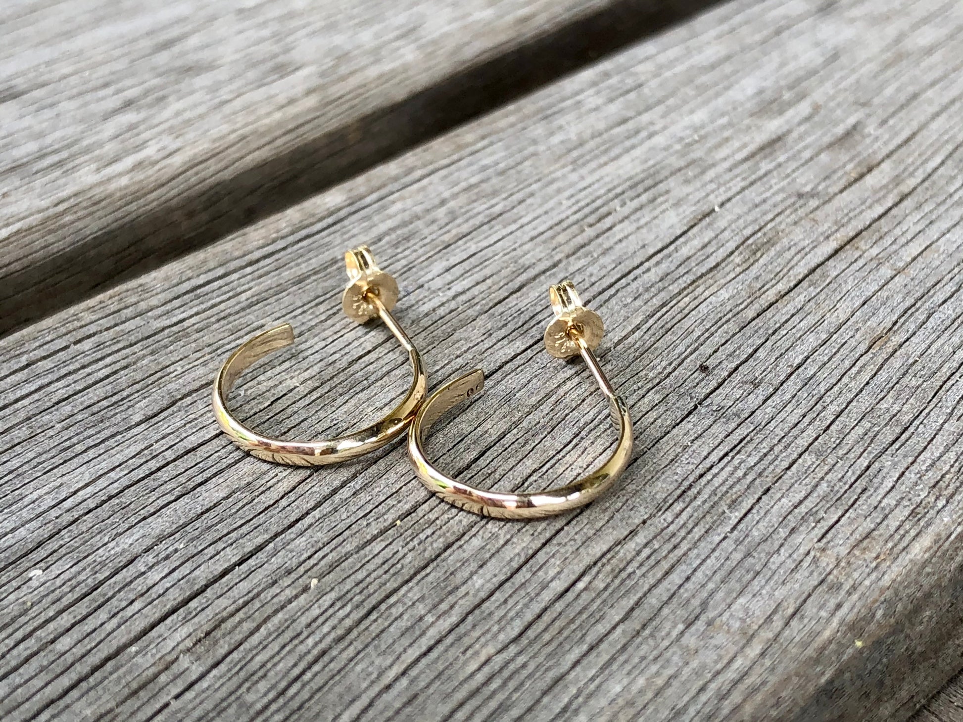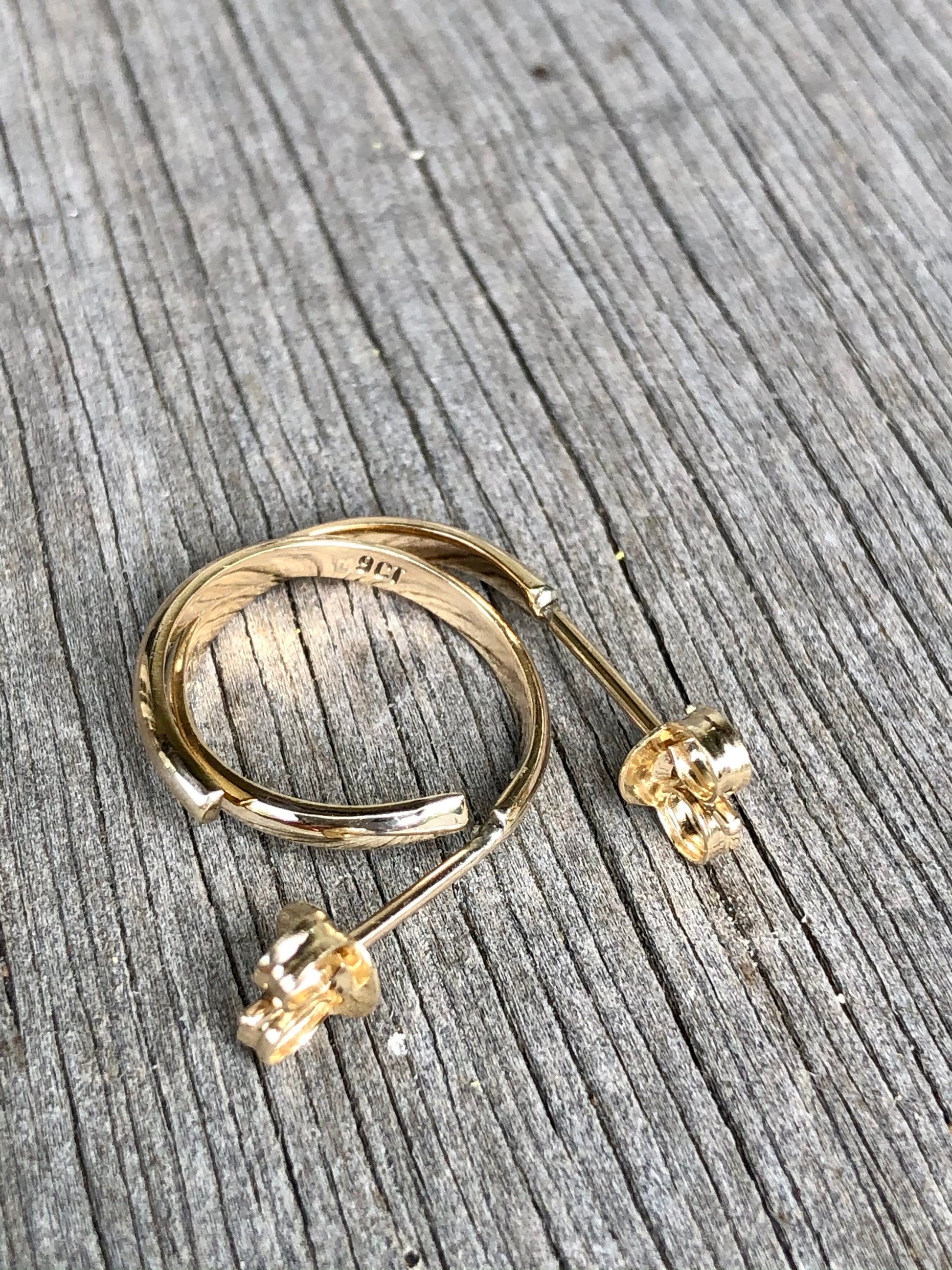 Hand made 3 quarter hoop stud earrings in 9k gold.