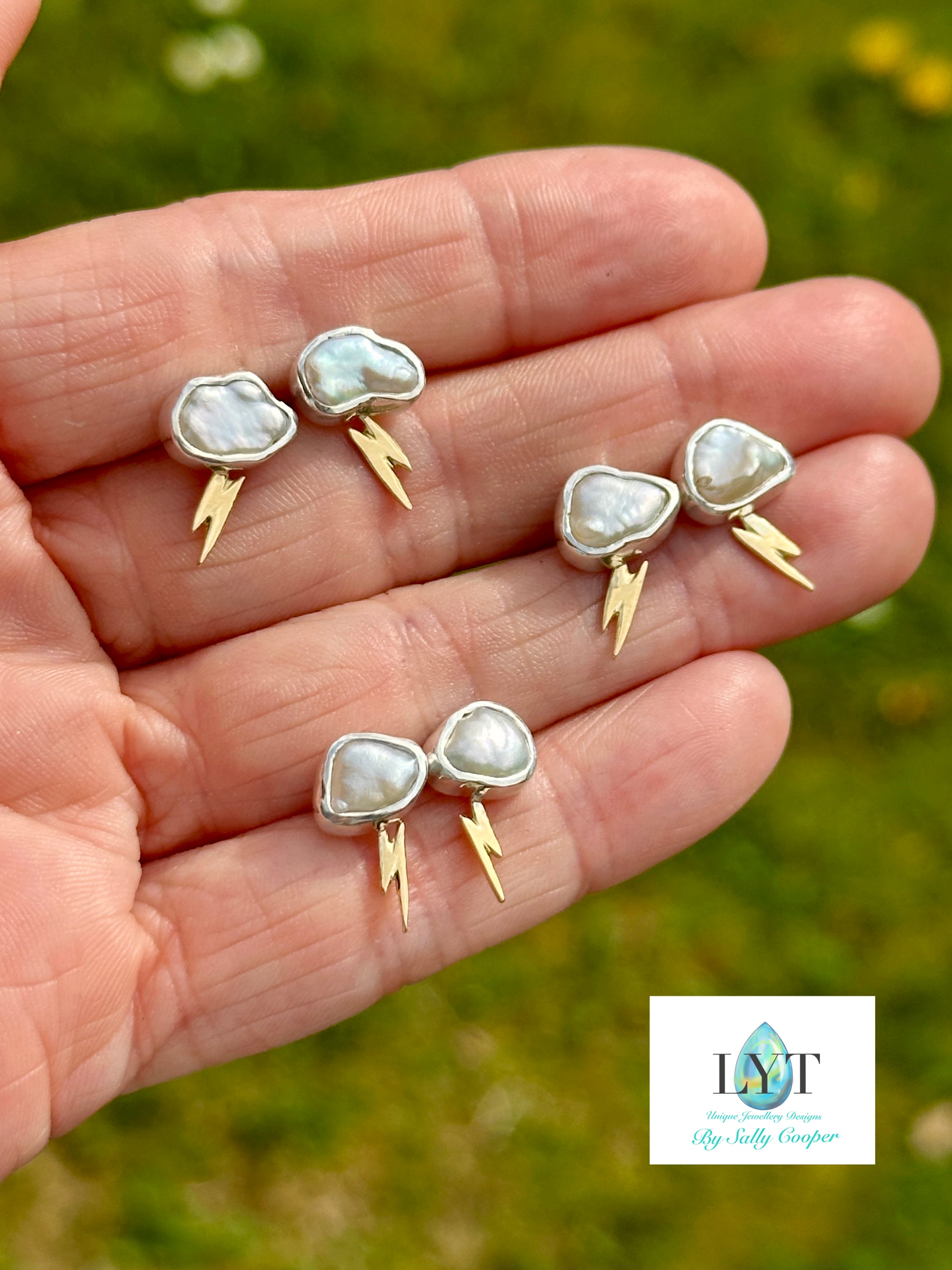 The perfect accompaniment to all my jewellery. These dainty Keishi pearl studs with 18k gold lighting strikes are so much fun to wear. You can literally pop them on and forget they're there.