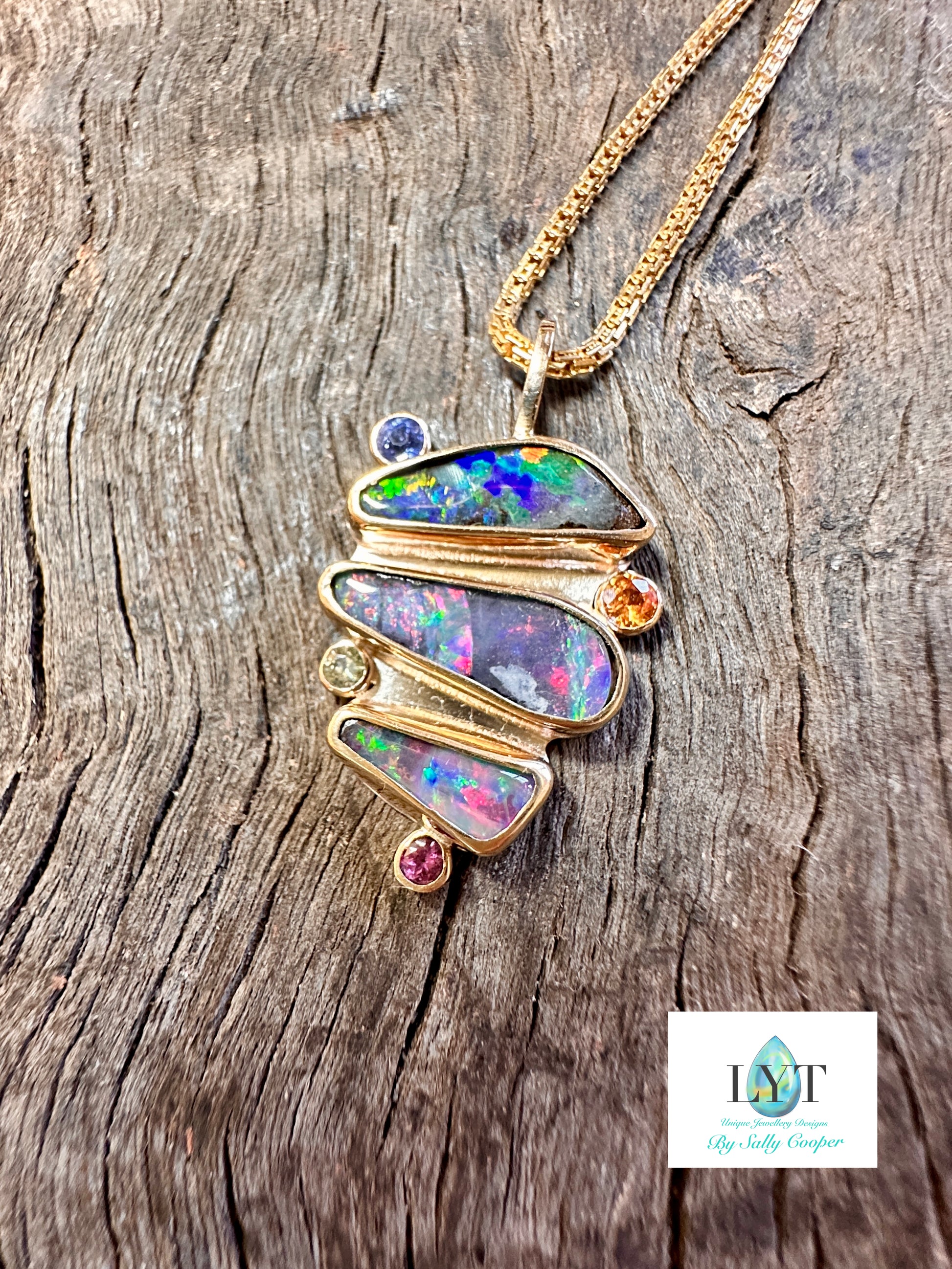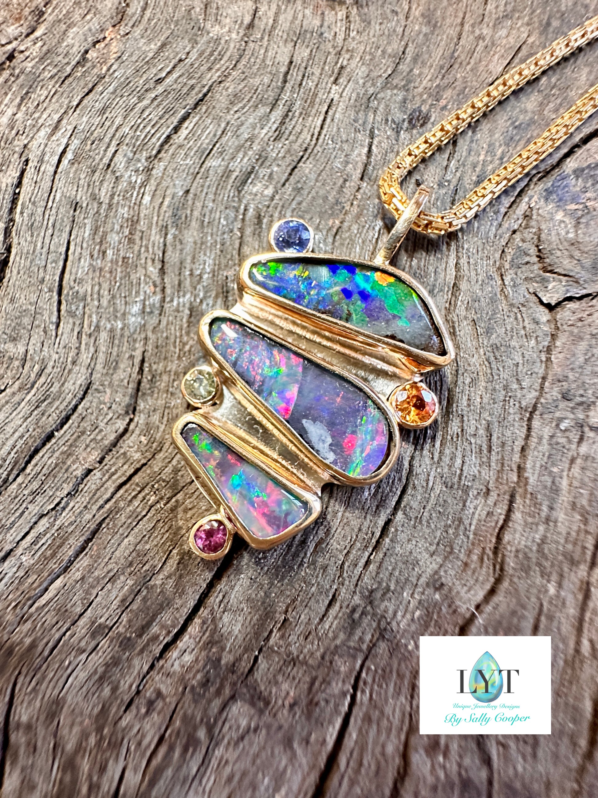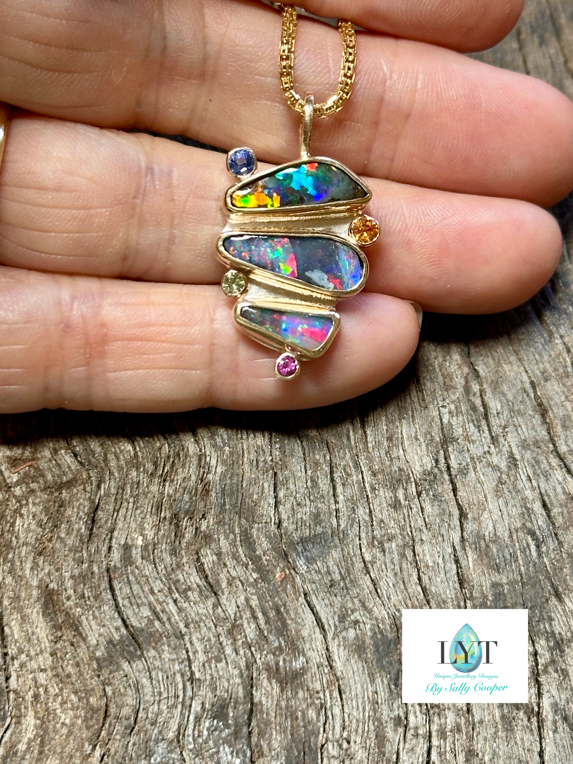 I am lucky enough to be able to cut my own stones as well as create and present to you my original works. Each piece is put together with the passion I have for making jewellery. Please be aware that these Opals may have natural pits and markings. They are as nature intended I have only cut, shaped and polished, I have not even tried to remove any imperfections.